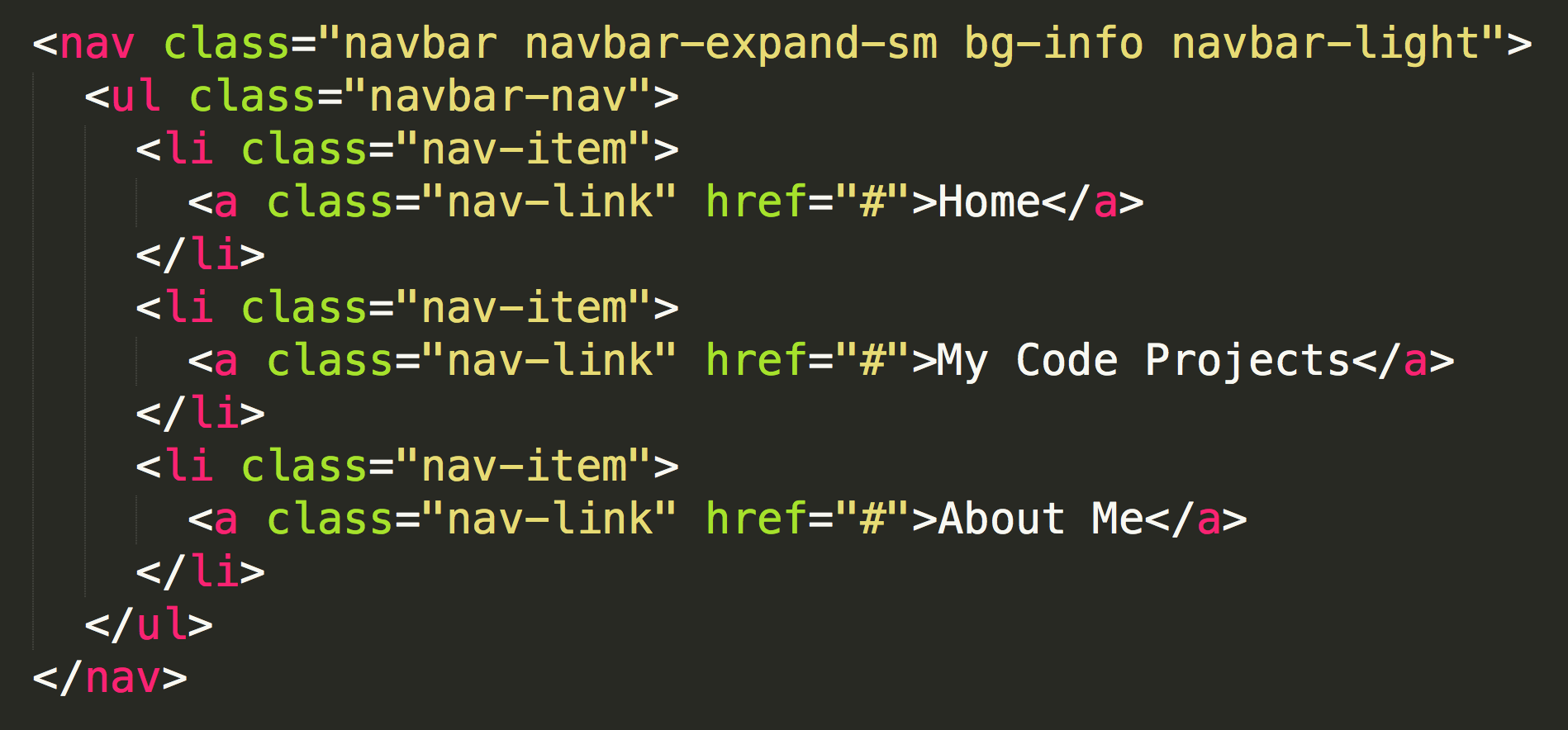 <nav class="navbar navbar-expand-sm bg-info navbar-light">