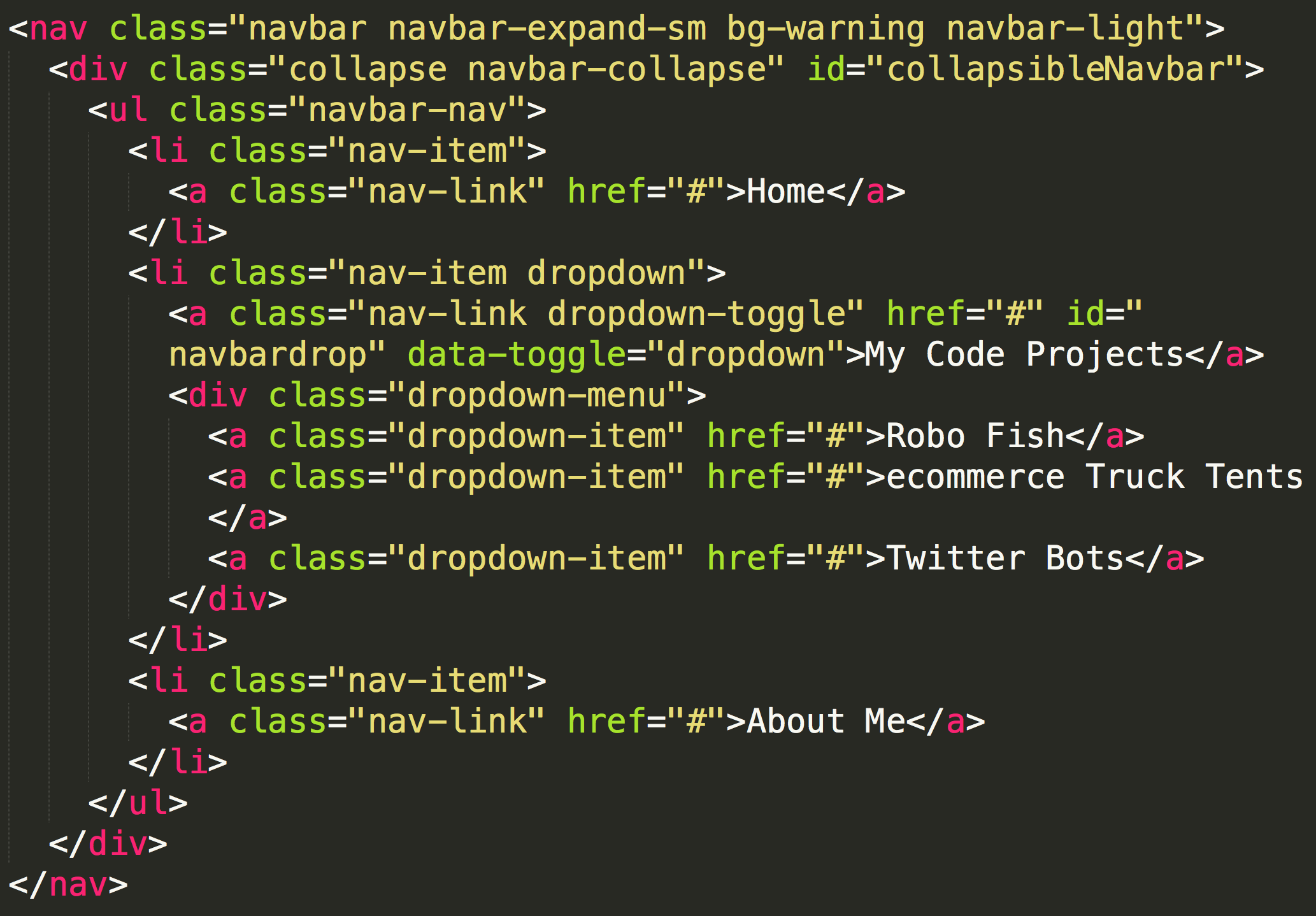 <a class="nav-link dropdown-toggle" href="#" id="navbardrop" data-toggle="dropdown">My Code Projects</a>