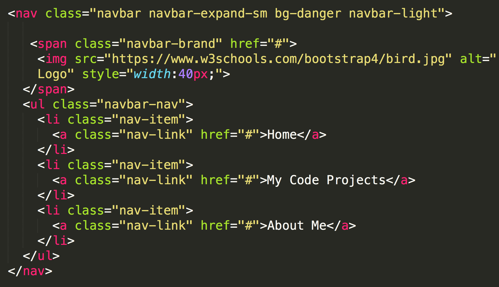 Navigation Bar with Image (click on 'About Me' to see the code):